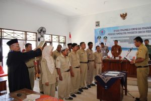 BREBESNEWS.co -202 Perangkat Desa dikukuhkan oleh kepala Desa masing-masing secara serentak di aula Kecamatan Jatibarang Brebes.
