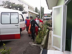 Mayat laki-laki anonim saat di bawa ke kamar jenazah RSUD Brebes