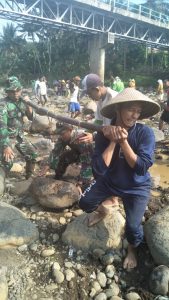 TNI dan warga Sindangwangi Kecamatan Bantarkawung saat kerja bahkati buat bendungan untuk antispasi persedian air persawahan di musim kemarau