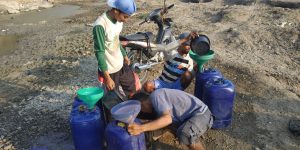 “Untuk macam-macam, untuk minum, mandi, memasak juga. Lha sumur di rumah sudah tidak ada airnya jadi ya semuanya pakai air dari sini (sumur buatan dasar sungai-red),” tuturnya.