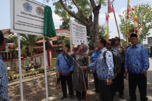 Peresmian ditandai dengan penandatanganan Prasasti dan pembukaan selubung papan Desa Pesantunan sebagai percontohan desa mandiri sampah 2019 tingkat Kab Brebes.