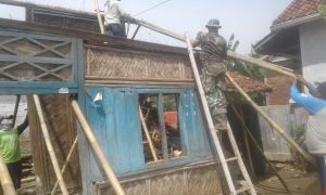 Selain warga setempat, unsur TNI-Polri, Pemdes serta Karang Taruna ambil bagian dalam renovasi rumah Khalimi (75), buruh tani asal Dukuh Siandong RT. 04 RW. 02.