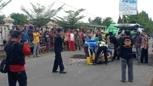 “Dugaan sementara di dekat sepeda motor yang dikendarai korban ada sebuah mobil yang mengerem mendadak. Kemudian pengendara sepeda motor kaget yang akhirnya terjatuh dan terlindas truk yang ada di sampingnya,” ungkap Iptu Ibnu di ruang kerjanya.